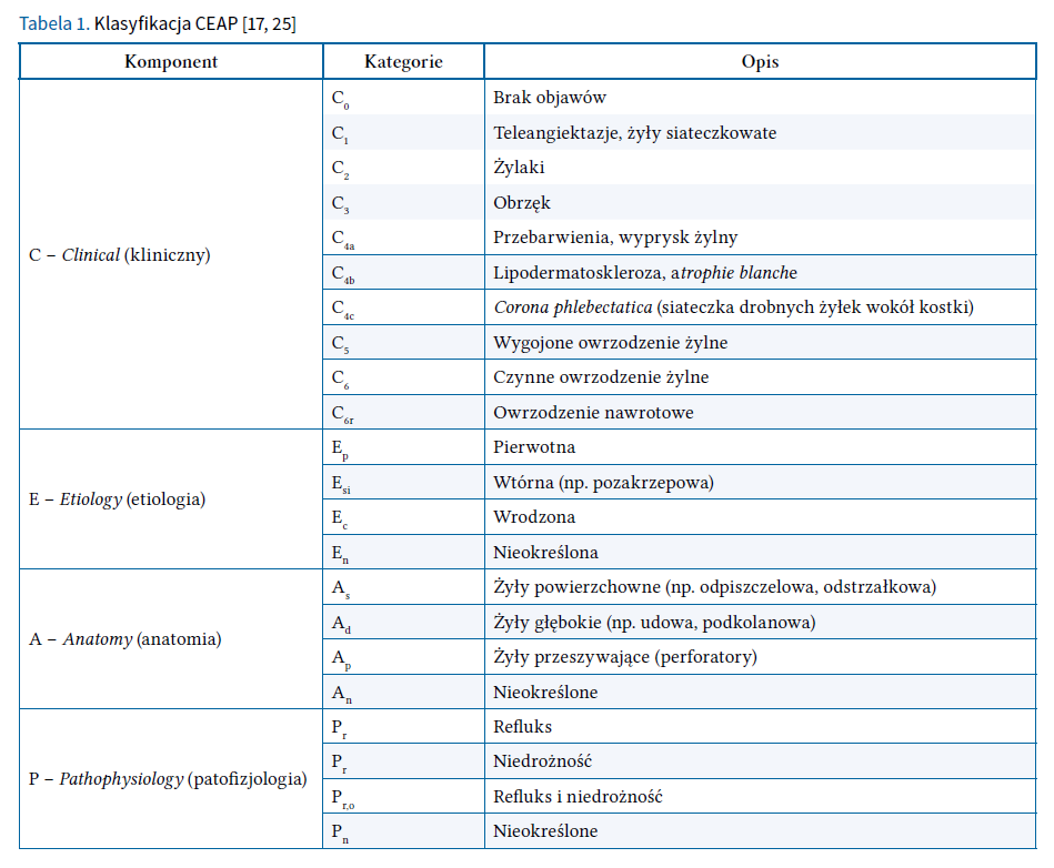 - Lurie F, Passman M, Meisner M i wsp. The 2020 update of the CEAP classification system and reporting standards. J Vasc Surg Venous Lymphat Disord 2020; 8: 342–352. DOI:10.1016/j.jvsv.2019.12.075.