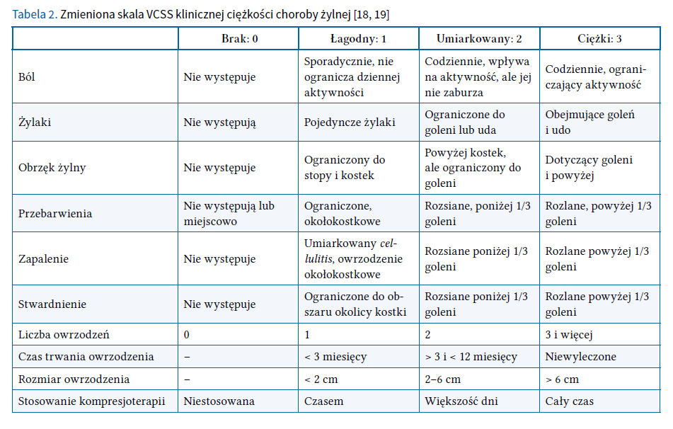 - Vasquez MA, Rabe E, McLafferty RB i wsp. Revision of the venous clinical severity score: venous outcomes consensus statement: special communication of the American Venous Forum Ad Hoc Outcomes Working Group. J Vasc Surg 2010; 52: 1387–1396. DOI: 10.1016/j.jvs.2010.06.161.